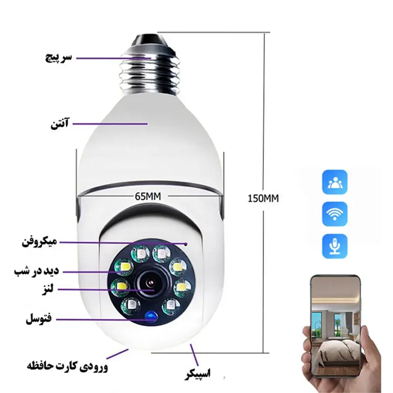 دوربین لامپی سرپیچی 360 درجه مدل V380 PRO