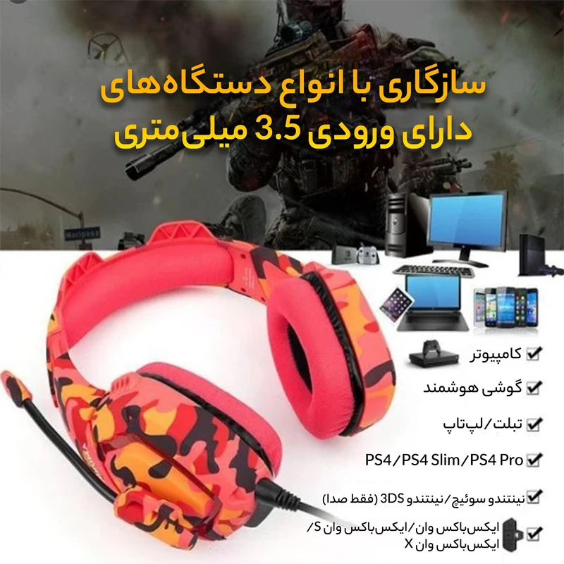 هدفون گیمینگ اونیکوما مدل ONIKUMA K1B طرح ارتشی