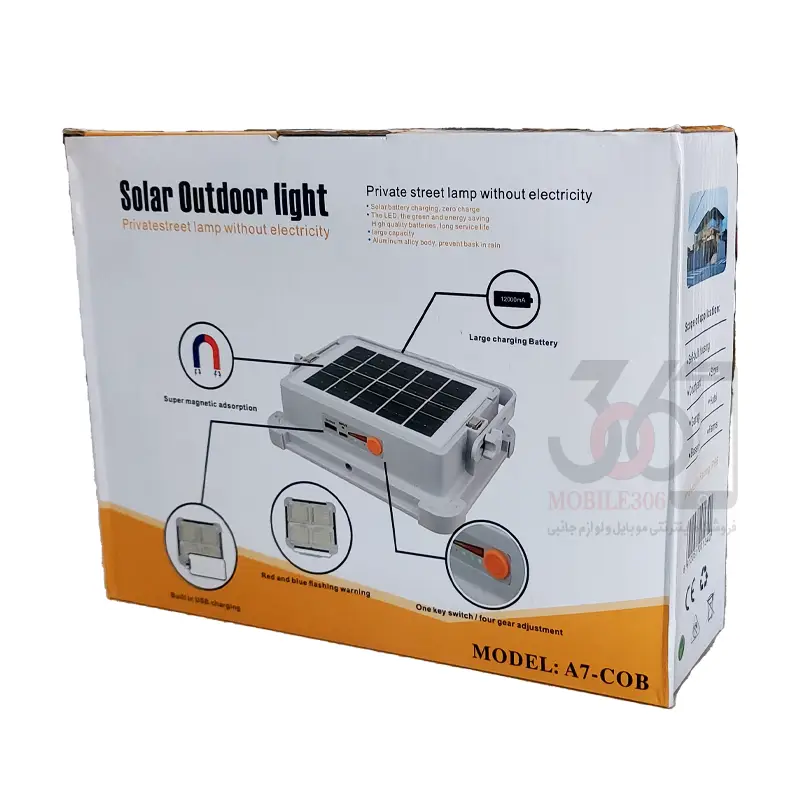 چراغ پروژکتور شارژی خورشیدی 150 وات مدل A7-COB