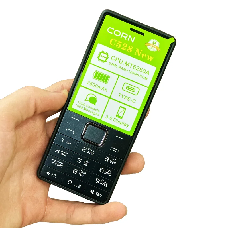 گوشی موبایل CORN مدل C528 NEW یک گوشی ساده و مدرن از شرکت CORN با طراحی کلاسیک دکمهای، صفحه بزرگ و باتری 2500 آمپری که برای استفاده روزمره بهترین گزینه است اگر دنبال گوشی کمخرج، جانسخت و بدون پیچیدگیهای گوشی هوشمند هستید، گوشی CORN C528 NEW انتخاب هوشمندانه است .