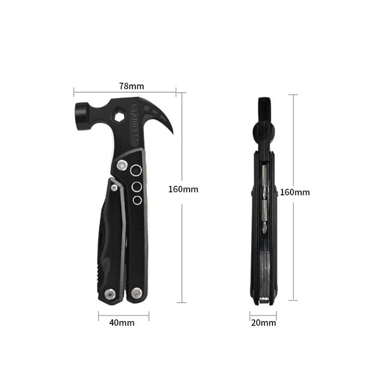 - عملکرد محصول: چکش چاقو میخ کش اره یا طناب بُر بطری بازکن قوطی باز کن سوهان فولادی پیچ گوشتی فیلیپس PH1. انبر تخت انبر سوزنی سیمچین آچار 6 گوش